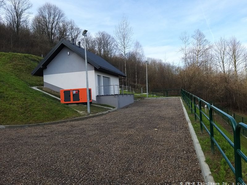 Budowa obejmowała również wykonanie uzbrojenie istniejącego ujęcia wód podziemnych w obudowę wraz z niezbędną armaturą i układem pompowym.